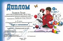 Ученик 7 класса Галимов Булат за 2 -е место в Открытом конкурсе детских творческих проектов "Идеи и начинания", приуроченном к Международному дню детских изобретений в номинации "Индивидуальный проект" награжден дипломом (Казань- Арск)
