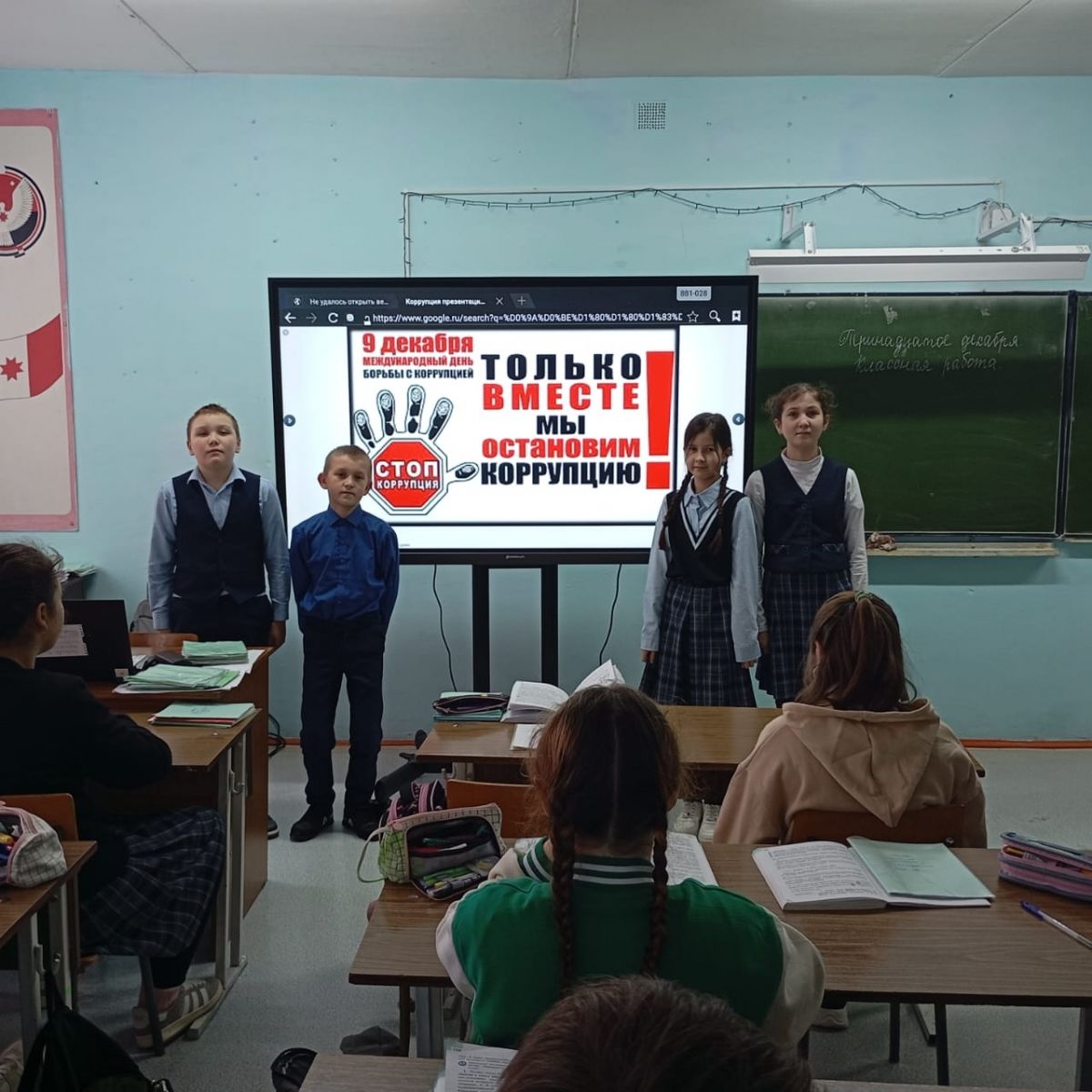 Со 2 по 9 декабря была проведена неделя антикоррупционных инициатив, приуроченная к Международному дню борьбы с коррупцией. Работа проводилась на уроках истории, обществознания, во время проведения классных часов и внеклассных мероприятий. Борьба с коррупцией - долг каждого гражданина, который должен проявлять активную гражданскую позицию. Таким образом, все мероприятия способствовали формированию правовой грамотности и нравственной культуры учащихся./2-9 декабрь көннәрендә Халыкара коррупциягә каршы көрәш көненә багышланган коррупциягә каршы инициативалар атналыгы үткәрелде. Эш тарих, җәмгыять белеме дәресләрендә, класс сәгатьләре һәм класстан тыш чаралар вакытында үткәрелде. Коррупциягә каршы көрәш - актив гражданлык позициясен күрсәтергә тиешле һәр гражданның бурычы. Шулай итеп, барлык чаралар укучыларның хокукый грамоталылыгын һәм әхлакый культурасын формалаштыруга ярдәм итте.
