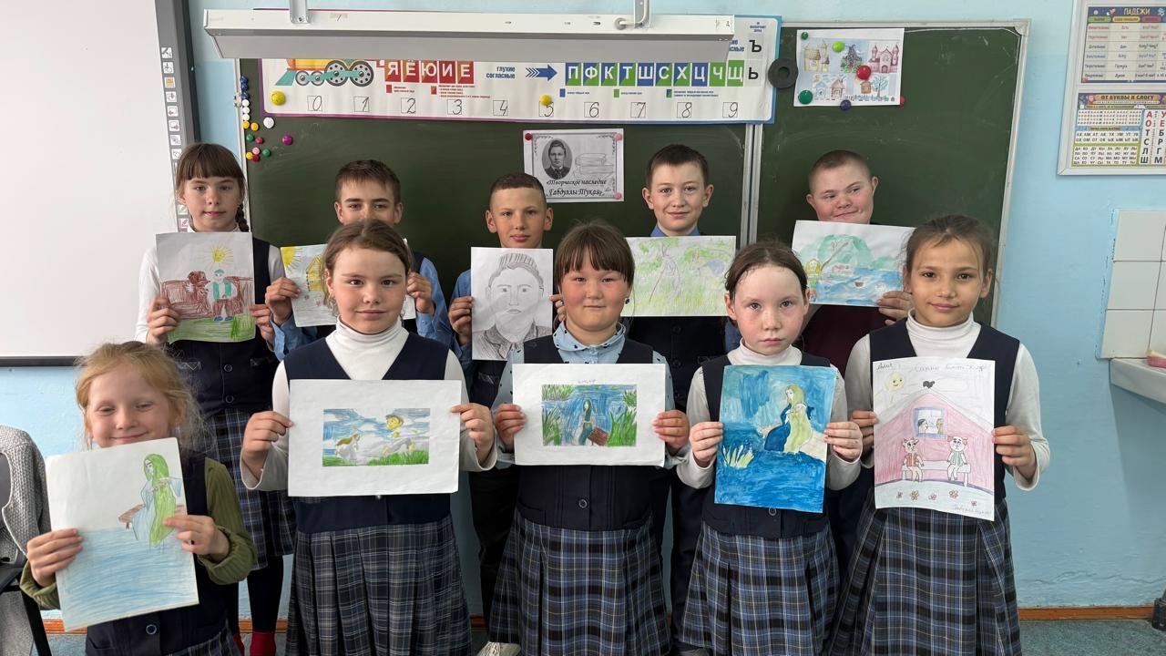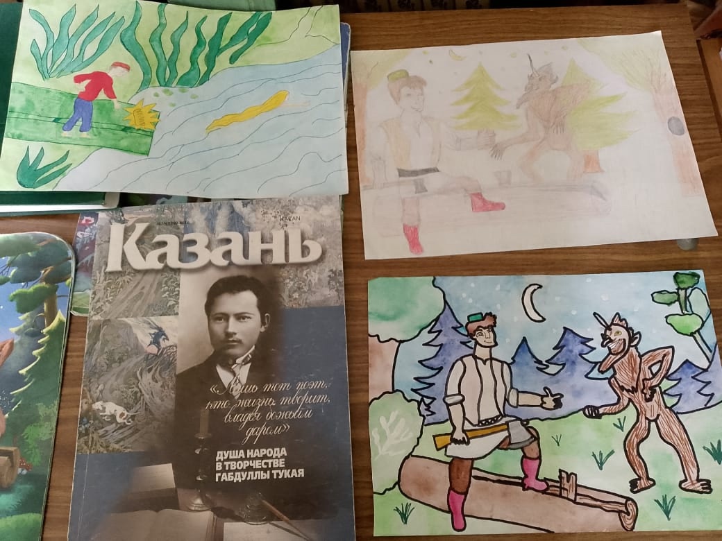 Согласно плану недели была организована выставка рисунков по стихам великого поэта татарского народа.