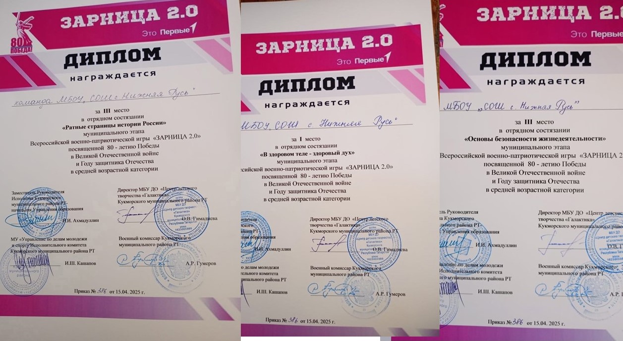 Бөек Ватан сугышында Җиңүнең 80 еллыгына һәм Ватанны саклаучылар елына багышланган "Аҗаган 2.0" Бөтенроссия хәрби-патриотик уенының муниципаль этабында урта яшь категориясендә мәктәп командасы 1,3 урынны яулады. Командада катнашучыларның барысын да лаеклы җиңүләре белән котлыйбыз! Уен барлык катнашучылар өчен чын сынау булды. Малайлар һәм кызлар стройга әзерләнүдә, спорт ярышларында, тарихны белүдә, беренче медицина ярдәме күрсәтүдә һ. б. үзләренең сәләтләрен бик теләп күрсәттеләр.
