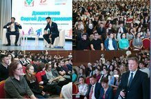 1 февраля в Районном Доме Культуры состоялась встреча Главы Кукморского муниципального района Димитриева С. Д. с будущими выпускниками школ района и студентами под лозунгом «Диалог на равных». В данном мероприятии приняли участие учащиеся 10 класса нашей школы. Выступая перед старшеклассниками и студентами, глава района Сергей Димитриевич ознакомил ребят с перспективами развития района. Призвал их после окончания учебного заведения вернуться в район и приложить максимум усилий для его развития и процветания. Своими мыслями поделились и остальные гости мероприятия. Далее встреча плавно перешла в свободный диалог, в ходе которого были обсуждены самые разные вопросы. Большинство касались молодежного досуга и спорта. Радует, что наши студенты и будущие выпускники неравнодушны к проблемам не только молодежи, но и города и района в целом. Спасибо организаторам и участникам встречи./ 1 февраль көнне Район мәдәният йортында Кукмара муниципаль районы башлыгы Димитриев С.Д. район мәктәпләренең булачак чыгарылыш укучылары һәм студентлар белән «Диалог на равных» шигаре астында очрашты. Бу чарада безнең мәктәпнең 10 сыйныф укучылары катнашты. Өлкән сыйныф укучылары һәм студентлар алдында чыгыш ясап, район башлыгы Сергей Димитриевич балаларны районның үсеш перспективалары белән таныштырды. Аларны уку йортын тәмамлаганнан соң районга кайтырга һәм аны үстерү һәм чәчәк ату өчен күп көч куярга чакырды. Чараның башка кунаклары да үз фикерләре белән уртаклаштылар. Аннары очрашу салмак кына ирекле диалогка күчте, аның барышында төрле мәсьәләләр буенча фикер алыштылар. Күбесе яшьләр ялына һәм спортка кагыла иде. Шунысы сөенечле, безнең студентлар һәм булачак чыгарылыш сыйныф укучылары яшьләр проблемаларына гына түгел, ә шәһәр һәм тулаем район проблемаларына да битараф түгел. Оештыручыларга һәм катнашучыларга рәхмәт.