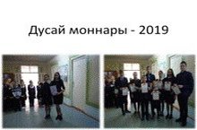 28 марта в д. Дусаево прошел традиционный районный конкурс юных талантов "Дусай моңнары". Наша школа приняла активное участие. Бикбова Ильсина, Петухова Кристина заняли III место в номинации «Хореография» ( татарский народный танец). На выставке декоративно – прикладного творчества, заняли II место: Михайлов Леонид, Михайлов Ленар, Гарифуллина Гулия, Раимова Анна, Петухова Кристина, победитель в номинации «За оригинальность исполнения»: Никонорова Азалия, Якимов Владислав.