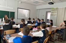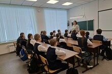 Советник директора по воспитанию и взаимодействию с детскими общественными объединениями Кузьмина М.В. провела для учеников 5 класса интерактивную лекцию-беседу. В начале встречи школьники погрузились в хроники великой битвы.