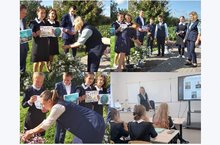 В память жертв Беслана, которые все три дня, находясь в заточении, не могли выпить и капли воды, участники акции подходили к чаше с водой, набирали в ладони немного воды и с пожеланием светлой памяти всем безвинно погибшим поили цветы, которые растут на территории школы.