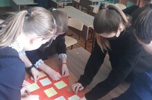 В рамках недели психологии в 8 б классе была проведена игра "Сердце класса". Учащиеся написали комплименты друг для друга и из них создали сердце нашего класса.