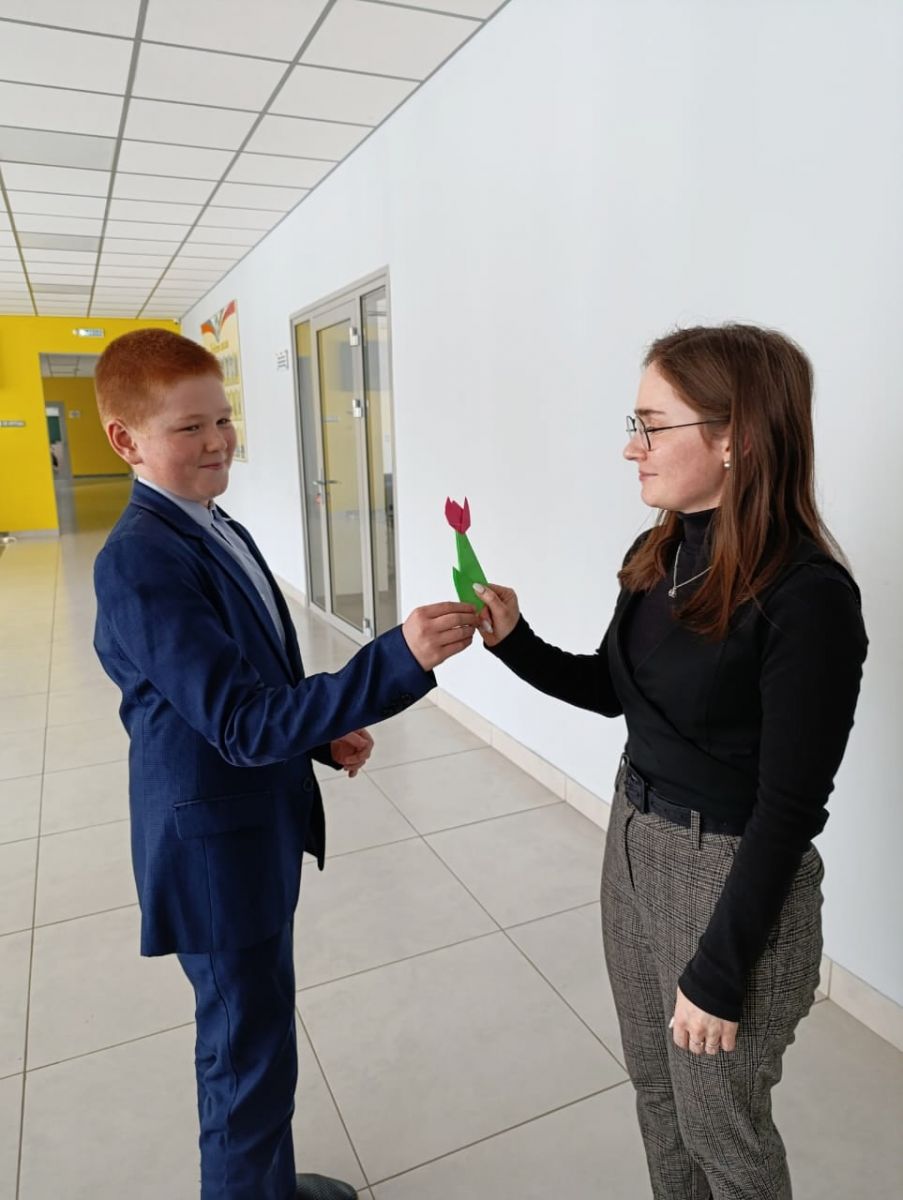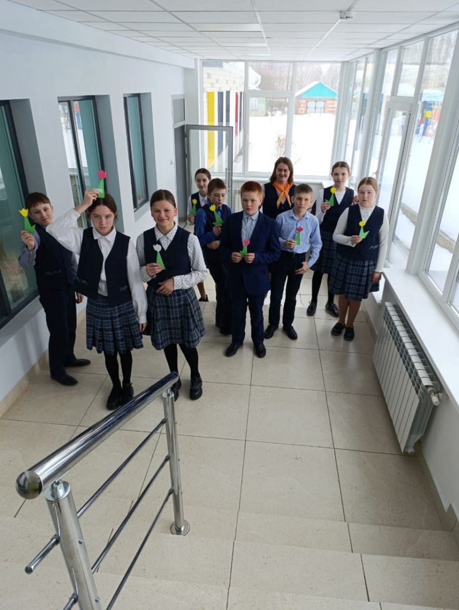 Опубликовано: 12.03.2025"Тюльпан на 8 марта" мастер класс в технике оригами.Учащиеся 6 класса под руководством советника директора по воспитанию Ивановой О. А. изготовили тюльпаны из цветной бумаги с помощью техники оригами. Изготовленные тюльпаны, учащиеся подарили женщинам-учителям, своим мамам.