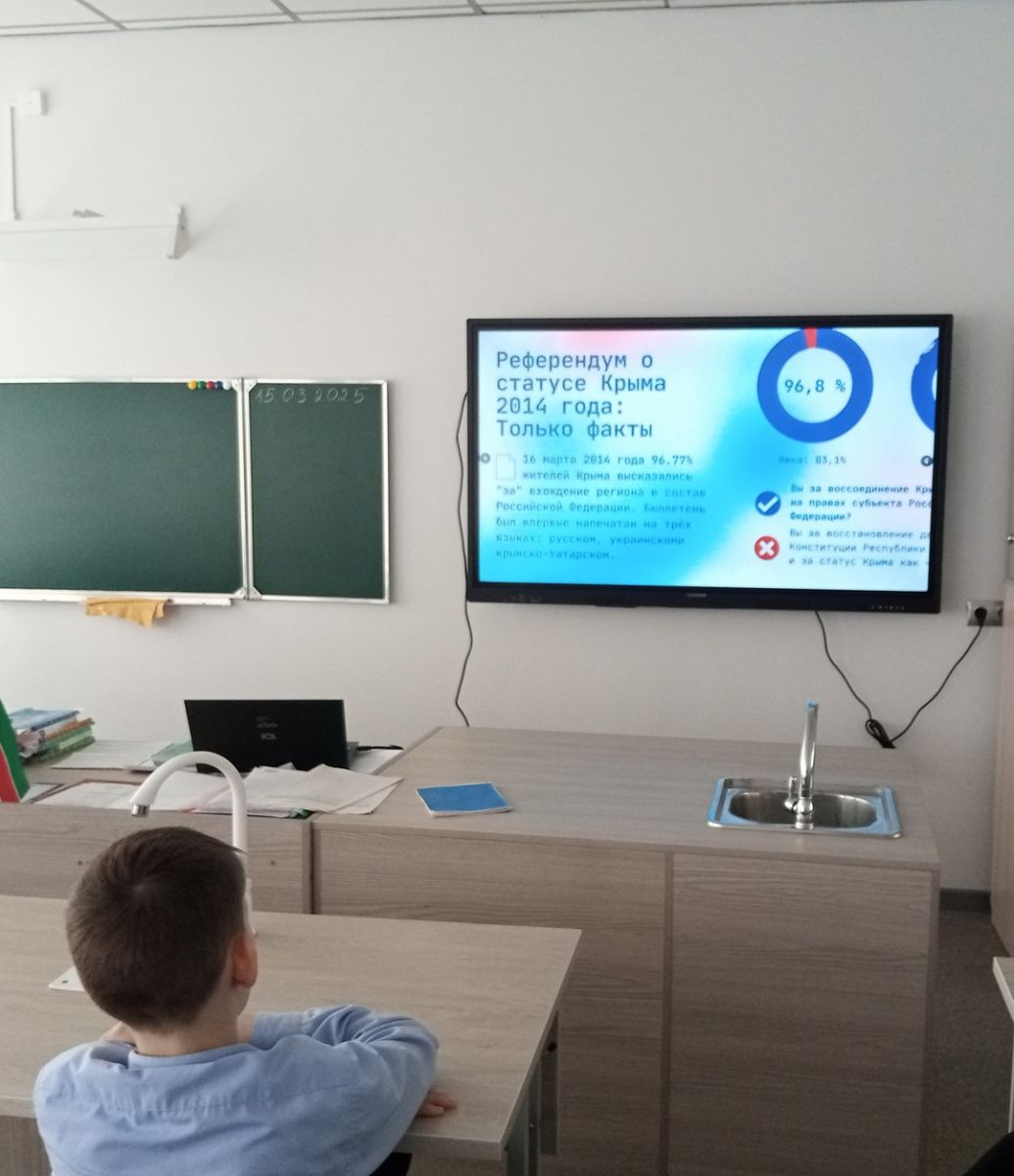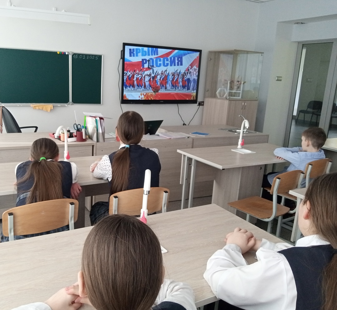 Опубликовано: 15.03.2025В преддверии Дня воссоединения Крыма и Севастополя с Россией советник директора по воспитанию Иванова О. А. провела урок памяти в 6 классе. Ребята познакомились с историей Крыма с древнейших времен и до наших дней. Также на Уроке памяти было рассказано о событиях последних лет: итогам проведения в марте 2014 года референдума в Крыму и Севастополе, межгосударственном договоре о принятии Крыма и Севастополя в состав России, подписанного 18 марта 2014 года. Ребята посмотрели видеоролик с достопримечательностями Крыма.