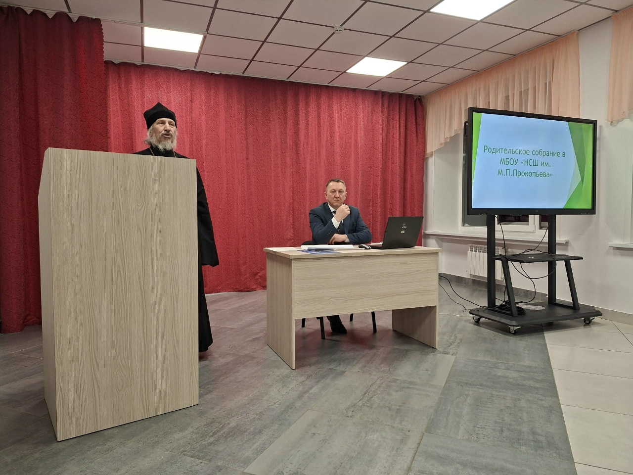 Опубликовано: 30.01.202630 января в школе состоялось родительское собрание с приглашением отца Леонида и главы Нырьинского сельского поселения Кузьмина П.П. На собрании присутствовали оба родителя учащихся. Обсуждалось серьёзные вопросы, такие как мониторинг социальных страниц, преступления и правонарушения - как избежать ошибок. Отец Леонид выступил с темой: "Ценности семейного воспитания".