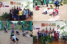 В течение дня были организованы спортивные игры. Затем разучивали новые песни.