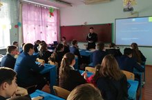 С целью профориентационной работы выпускник нашей школы, ныне студент колледжа государственной и муниципальной службы г.Ижевск Зайцев Олег, выступил перед старшеклассниками об учебном заведении, в котором он учится, в доступной форме ознакомил ребят с условиями поступления в колледж, рассказал о специальностях, по которым готовят учащихся. Учащиеся получили ответы на все интересующие их вопросы.