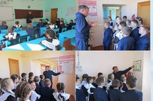 С целью закрепления знания детей о правилах пожарной безопасности и как вести себя во время пожара, 16 ноября учитель ОБЖ Зайцев С. Н. для учащихся 5 класса провел беседу по теме «Пожарная безопасность».
