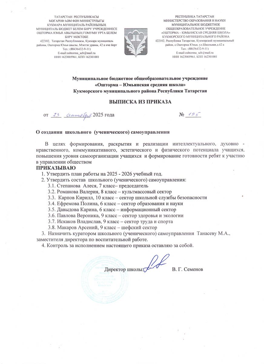 Приказ о выборах руководителя Совета обучающихся