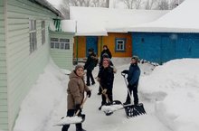 6 класс укучылары классларына йөкләнгән олы яшьтәге, ялгыз яшәүче Мөгъзания апага карлар көрәшеп, хуҗалык эшләрендә ярдәм итешеп кайттылар.