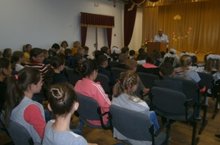 3 сентября провели урок, посвященный памяти жертв актов терроризма с приглашением старшего УУП отдела МВД России по Кукморскомурайону майора полиции Шакирова Р.Р.. Он рассказал об опасности терроризма, призывал быть бдительными и объяснял, как вести себя в таких случаях. В мероприятии участвовали 130 учащихся и 23 преподаватели.
