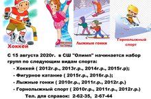 С 15 августа 2020г. в СШ "Олимп" начинается набор групп по следующим видам спорта: