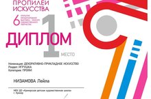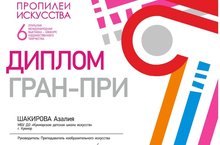 Шакирова Азалия, учащаяся художественного отделения, приняла участие в Международном конкурсе- выставке "Пропилеи искусства", где была удостоена диплома Гран- При. рук. Низамова Л.Н.