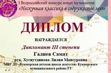 - Диплом 3 степени на Всероссийском конкурсе- фестивале инструментальной музыки " Нескучная классика в содружестве муз"