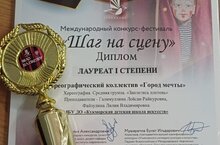 26 января в городе Казань состоялся Международный фестиваль- конкурс "Шаг на сцену". В конкурсе принимали участие коллективы и солисты из разных городов РФ. Учащиеся Кукморской детской школы искусств так же показали свое мастерство и в номинации "Хореография" хореографические коллективы были удостоены высоких результатов: хореографиесский ансамбль "Город мечты" (средняя группа)- Лауреат 1 степени (рук. Галимуллина Л.Р., Файзулина Л.В.) и хореографический ансамбль "Город мечты" (дошкольная группа) так же Лауреат 1 степени (рук. Галимуллина Л.Р.).