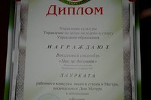 28 ноября 2017 года в с. Большой Кукмор состоялся Гала – концерт районного конкурса стихов и песен о Матери, посвященный Дню Матери. По итогам районного конкурса лауреатами конкурса стали следующие учащиеся Кукморской детской школы искусств: Ханафина Алия (театральное отделение – класс преподавателя Ваккасовой Регины), вокальный ансамбль «Нас не догонят» (музыкальное отделение – класс преподавателя Сафиной Миляуши), вокальный ансамбль «Улыбка», Тимергалиев Хаким и Хабибуллина Залина (музыкальное отделение – класс преподавателя Нурмеевой Лилии), Хантимирова Рисана, Ханова Аделя, Фаизова Диляра, Гильмутдинов Ильназ, Хаммадиев Ирек, Фатхуллин Азат (музыкальное отделение – класс преподавателя Хуснутдиновой Лилии).
