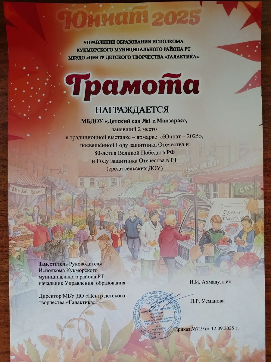 муниципальное бюджетное дошкольное образовательное учреждение "Детский сад №1 села Манзарас"Кукморского муниципального района Республики Татарстан