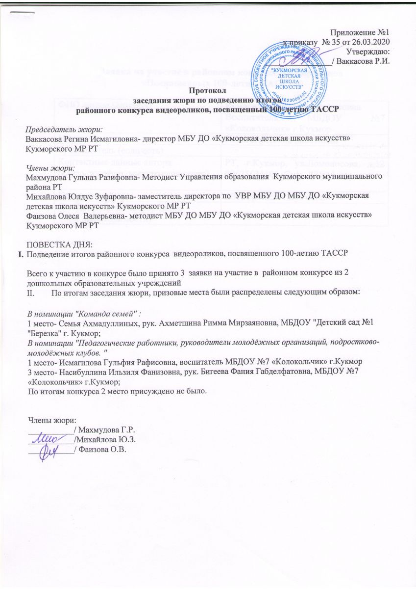 Организация районного конкурса видеороликов, посвященного100 летия ТАССР |