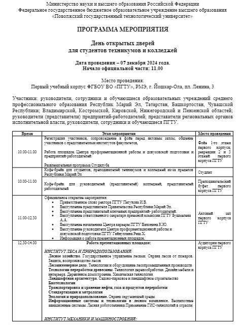 ПГТУ (Йошкар Ола) приглашает на день открытых дверей 7 декабря 2024 года