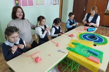 19 марта, согласно плану мероприятий, посвящённых Году семьи, классный руководитель 1 класса Юнусова В.И. организовала мастер-класс родителей для детей по изготовлению коврика из вторичного сырья. Дети с удовольствием учились вязать крючком. -