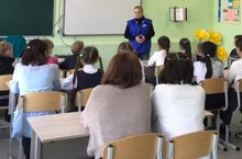 Сегодня для учащихся 1 -9 классов провели профилактическую беседу по правилам дорожного движения для пешеходов,велосипедистов и несовершеннолетних участников дорожного движения. Бүген 1 - 9 сыйныф укучылары белән юл хәрәкәте кагыйдәләре буенча әңгәмә уздырырылды.