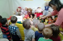 Сегодня в детском саду проводилась выставка игрушек "Игрушки маминого детства". На выставке можно было увидеть и забытого всеми Чебурашку и крокодила Гену, и героев мультфильмов Чипполино и Незнайку. Также на выставке игрушек много пупсов, деревянных машинок и счетов.