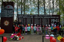 Җиңү көне һәр кеше тормышында, илебез тарихында иң әһәмиятле көннәрнең берсе. Җиңү көне иң якты, иң күңелле, иң кадерле һәм иң яраткан бәйрәм булып кала. Башка бернинди бәйрәмнәр дә аның белән чагыштырырлык түгел. Күпме генә вакыт үтсә дә, бу сугышта халкыбызның батырлыгы беркайчан да кимемәячәк, һәм ул заман каһарманнарының даны да сүнмәячәк. Бу сүзләр шактый еш әйтелә, ләкин бу чынлыкта шулай: фашизмны җиңгән бөтен совет халкының батырлыгы һәм фидакарьлеге булмаса, бөтен кешелекнең, бөтен дөньяның тарихы чыннан да фаҗигале булыр иде.Илебез Бөек Ватан сугышында Җиңүнең 80 еллыгын билгеләп үтәчәк. 7 май көнне балалар бакчасында тәрбияләнүчеләр КВВК янындагы һәйкәл янына юнәлделәр. Мәктәпкәчә яшьтәге балалар мемориалга канәферләр салдылар һәм бер минут тынлык белән искә алдылар, сугыштан кайтмаган, сугышта һәлак булган һәм барлык солдатларга хөрмәт күрсәттеләр. Экскурсиядән соң Россиянең нәни гражданнарының күңелләрендә җиңүче илебез өчен горурлык хисе, Ватаныбыз өчен, бүгенгебез һәм киләчәгебез өчен көрәшкән барлык ветераннарга тирән рәхмәт хисе туды дип өметләнәбез. Азат итүче сугышчыларга, ветераннарга һәм тыл хезмәтчәннәренә дан! Каһарманнарга мәңгелек хәтер!