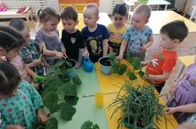 В детском саду реализуется проект "Зеленая грядка". Воспитанники с удовольствием ухаживают за комнатными цветами, рассадой, наблюдают, экспериментирую, познают секреты садоводства.