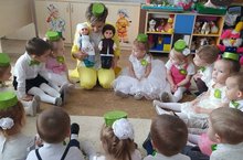 Сегодня детский сад встречал почетных гостей: депутата государственного совета РТ, поэта Разиля Валиева, депутата государственного совета К.А.Нугаева и Р.А.Ратникову. Воспитанники тепло поприветствовали гостей, показали татарский народный обычай "Орлык чыгару", рассказали стихи, спели песни о родном крае, языке. Разиль Валиев прочитал свои детские стихи, восхитился знанием родного языка воспитанниками, оставил в библиотеке детского сада авторские книги и диск . Завершилась встреча исполнением песни Г.Тукая "Туган тел".