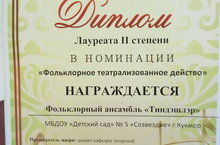 С целью сохранения и возрождения традиционной культуры татар, ознакомления с ней подрастающего поколения и формирования общественного толерантного сознания при поддержке Исполкома Всемирного конгресса татар и конгресса татар Кировской области в г.Вятские Поляны прошел I Международный фестиваль-конкурс татарского фольклора "Науруз Мубаракбад". Фольклорный коллектив детского сада "Тиңдәшләр" принял участие в номинации "Фольклорное театрализованное действо" и стал лауреатом II степени. Молодцы!!!