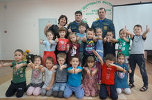 В детском саду ведется постоянная и планомерная работа по профилактике пожарной безопасности среди дошкольников. Ежегодно проводятся Месячник безопасности, Месячник пожарной безопасности «Дети против огненных забав». Наши педагоги планируют и регулярно проводят занятия по ОБЖ «Спички детям не игрушка», «Правила поведения в лесу», «Для чего нужен огнетушитель» и беседы с детьми по данной тематике, проводятся выставки детских рисунков на темы «Внимание: электоприборы!», «Пожарные спешат на помощь», «Тили-бом, тили-бом загорелся кошкин дом» по впечатлениям детей от прочитанных художественных произведений. Сегодня инспекторы МЧС познакомили дошкольников с профессией пожарный, на примере показали и рассказали о серьезных последствиях пожара. Особенно детям понравилось облачаться в обмундирование пожарного. Встреча закончилась фотосессией.
