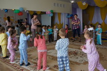 Детство - время для веселых праздников и развлечений, радостных и ярких событий в жизни. Готовясь к праздникам, дети объединяются, переживают массу положительных эмоций. Подготовка к празднику пробуждает интерес к творчеству, развивает коммуникативные навыки, способствует накоплению опыта общественного поведения, проявлению инициативы и самостоятельности.Сегодня в средней группе детского сада прошла "Пижамная вечеринка". Всеобщее веселье, красочность оформления, яркие костюмы, праздничная атмосфера сыграли положительную роль в эстетическом воспитании и развитии дошкольников.