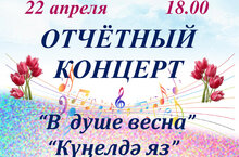 22 апреля 2024г. в 18.00 приглашаем всех в РДК на отчетный концерт Кукморской детской музыкальной школы "В ДУШЕ ВЕСНА" - "КҮҢЕЛДӘ ЯЗ"