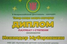 21 апреля в г.Вятские Поляны состоялся II Всероссийский фестиваль-конкурс «Татар моңы мәңге яңгырар– 2024». В номинации «Народная инструментальная музыка» учащийся отделения народных инструментов по классу баяна Мубаракшин Искандер (преп.Рафиков Д.Ф.) удостоился звания Лауреата 1 степени!