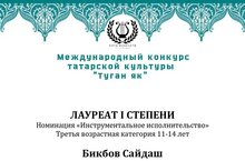 27 ноября стали известны результаты Международного конкурса татарской культуры «Туган як», прошедшего в г.Казань. В номинации «Инструментальное исполнительство» приняли участие учащийся по классу баяна Бикбов Сайдаш и преподаватель Рафиков Д.Ф.