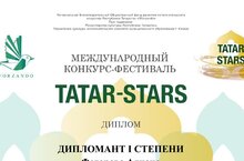 25 майда Казанда үткән «ТАТАR-STARS» Халыкара конкурс-фестивале нәтиҗәләре билгеле булды. «Кыллы инструментлар» номинациясендә «Viva» Образцовый ансамбле 3 нче дәрәҗә Лауреат, Гарифуллина Алсу 3 нче дәрәҗә Лауреат, Федорова Алиана - 1 нче дәрәҗә Дипломант ияләре булдылар. Укучыларны, укытучыны Гомәрова Э.Г., концертмейстерлар Мамкина Д.Р., Хәкимуллина А.Л. җиңүләре белән котлыйбыз! Киләчәктә дә иҗади уңышлар телибез!