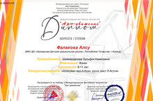 Поздравляем наших учащихся и преподавателя Шаймарданову З.К. с победой в Международном фестивале творчества "Арт-движение". Фалахова Алсу удостоилась звания Лауреата 1 степени, Давыдова Славяна - Лауреата 2 степени!