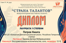 Петров Никита (фортепиано) - Лауреат 1 степени (преподаватель Бариева Д.М.)