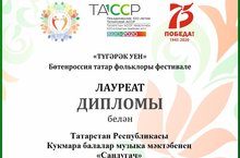 Ансамбль "Сандугач" Кукморской детской музыкальной школы под руководством Каримуллина Н.Р., Юзмеевой З.А. удостоился звания Лауреата 2 степени Международного детско-юношеского и взрослого фестиваля-конкурса татарской культуры «Мирас», прошедшего 28.11.2020 года в г.Самара
