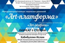 Казан шәһәрендә узган «Art-платформа» Халыкара сәнгать конкурсы нәтиҗәләре билгеле булды. «Инструменталь башкару» номинациясендә тынлы уен кораллары бүлеге укучысы Хәбибуллин Ислам - саксофон (укытучысы Хәсәнов М.Р.) 2нче дәрәҗә Лауреат исеменә лаек булды! Киләчәктә дә иҗади уңышлар телибез!