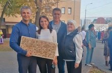 Высоко оценил и приобрел для себя, работу [панно из можжевельника] нашего педагога, учителя технологии Галимуллина Ильназа Робертовича, певец и композитор-Виль Усманов