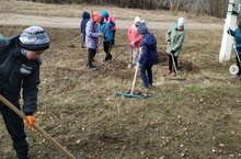 #эковесна акциясенə кушылып, мəктəп территориясен чистарту дəвам итə.