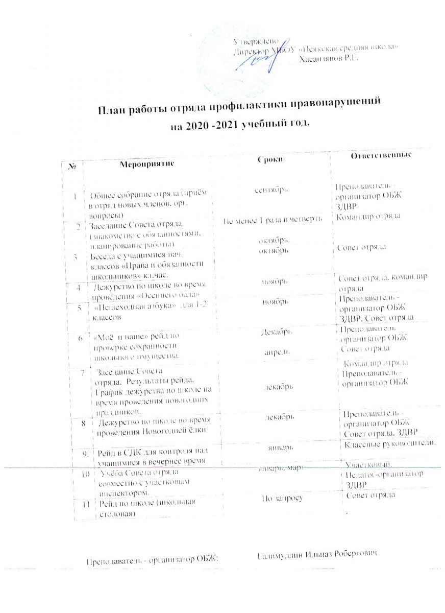 План работы отряда профилактики правонарушений на 2020-2021 уг