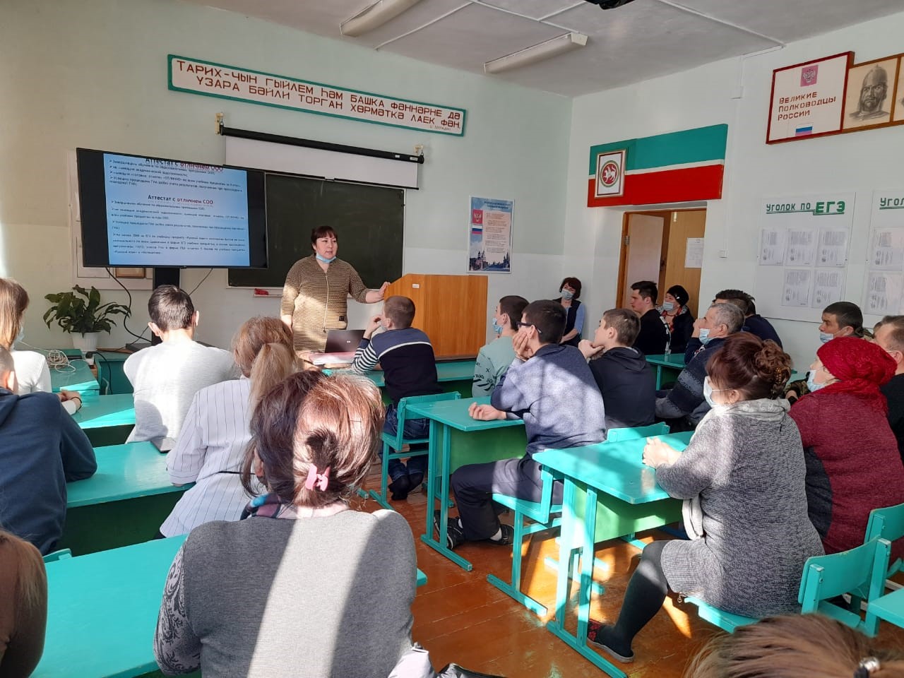 29 марта 2021 г. в нашей школе было проведено родительское собрание учащихся 9, 11 классов с участием методиста МУ «Управление образования Исполнительного комитета Кукморского муниципального района РТ» Галиевой З.Р. по вопросам подготовки и проведения ГИА-2021.