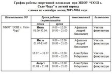 График работы спортивной площадки при МБОУ “СОШ с. Село-Чура” в летний период 06.06.2016