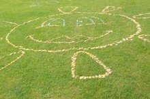 Бүген мәктәбебездә мәктәп яны "Кояшкай" ял һәм сәламәтләндерү лагере үзенең ишекләрен ачты. Балалар бик теләп таштан үзебезнең символыбыз "Кояшкайны" ясадылар.