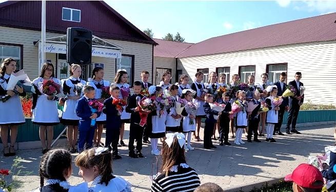 Торжественная линейка в честь Дня Знаний. Для первоклассников и выпускников прозвенел первый и последний звонок./Белем көне унаеннан тантаналы линейка уздырылды. Беренче һәм чыгарылыш сыйныф укучылары өчен кыңгырау шалтырады.